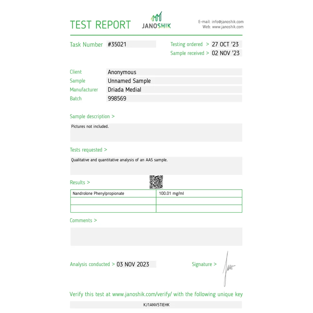 • Ingrédient actif : Nandrolone Phénylpropionate