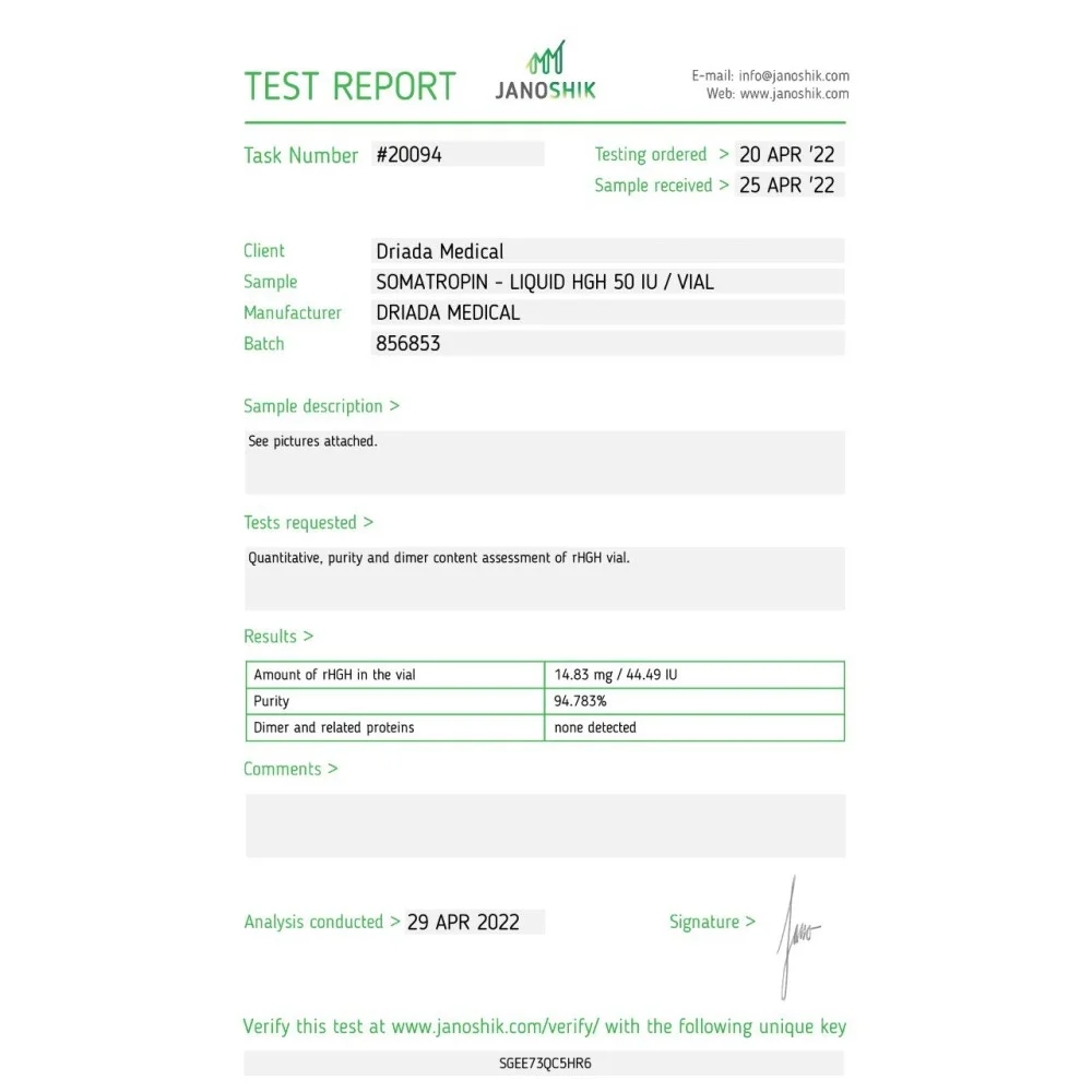 Il s’avère que l’hormone de croissance est plus stable que précédemment pensé, et il y a beaucoup de données scientifiquement prouvées. L’hormone de croissance liquide s’est avérée si efficace qu’elle a passé tous les tests et a été introduite sur le marché sous forme de produit fini. Par conséquent, tous les fabricants d’hormone de croissance passent actuellement au nouveau standard de production de la forme liquide du médicament.